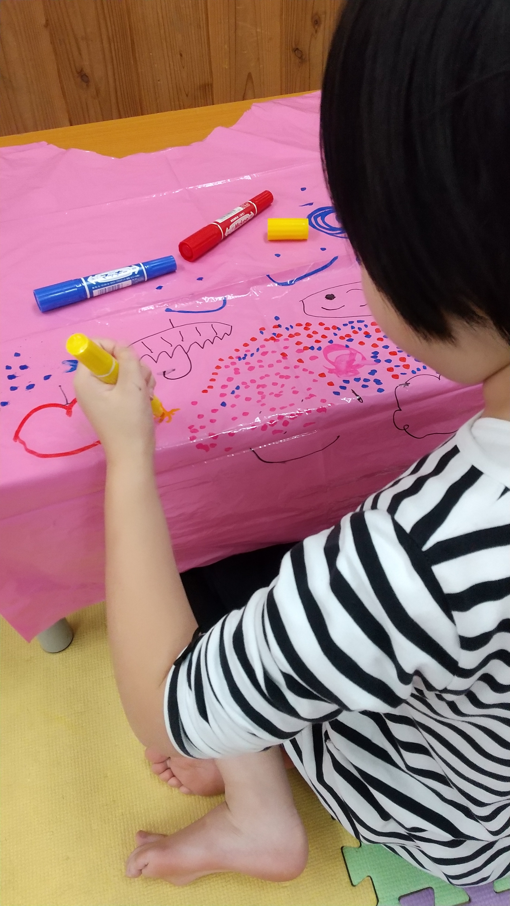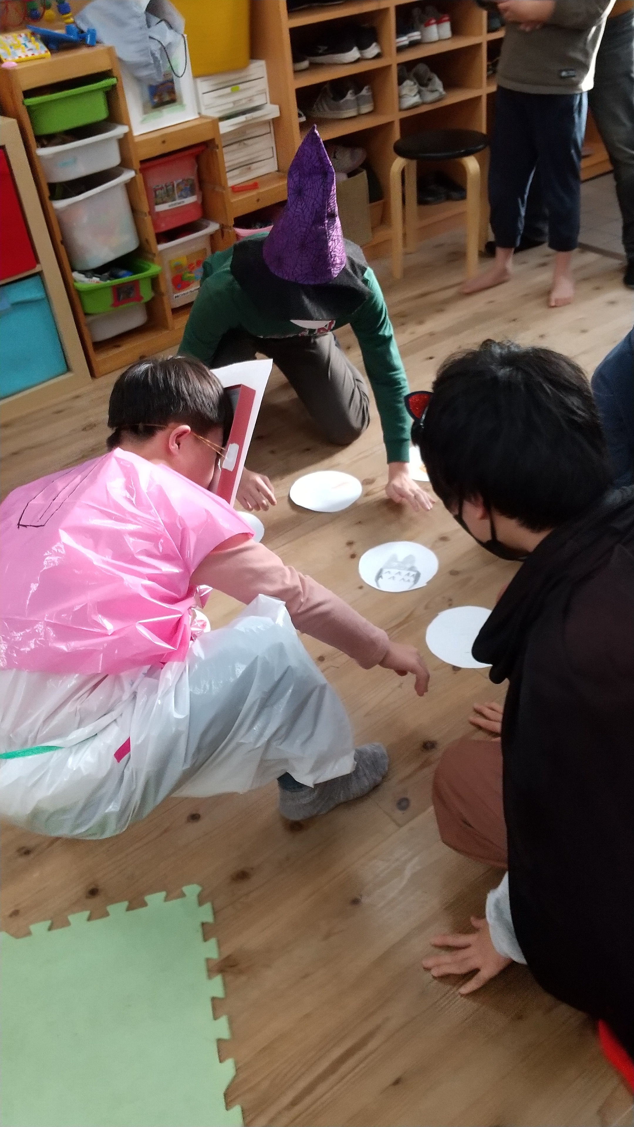 他にもお化けとお菓子の絵をカードに描いてゲームをつくるお子さんもいれば、歌やダンスショーをするお子さんもいました。