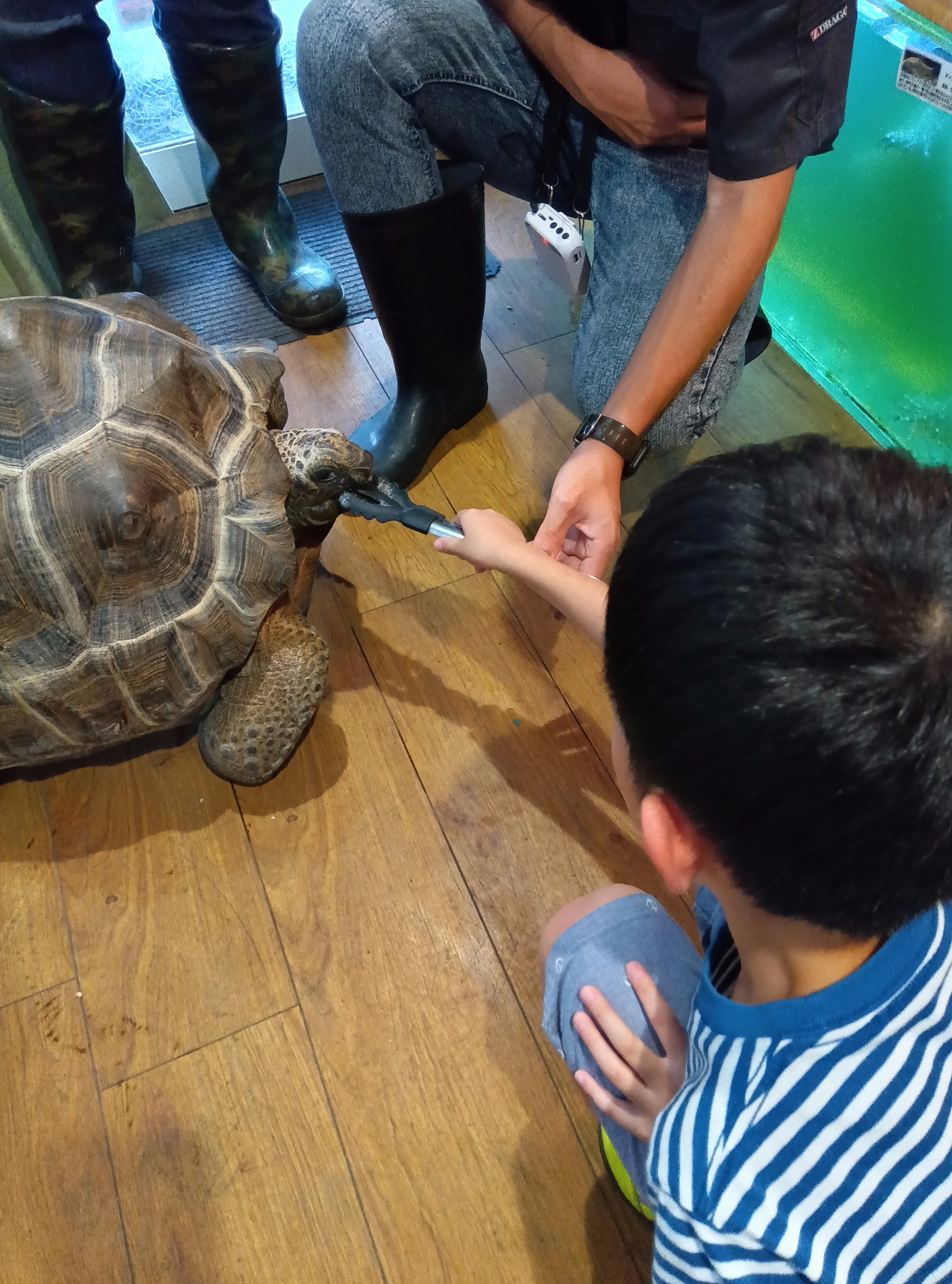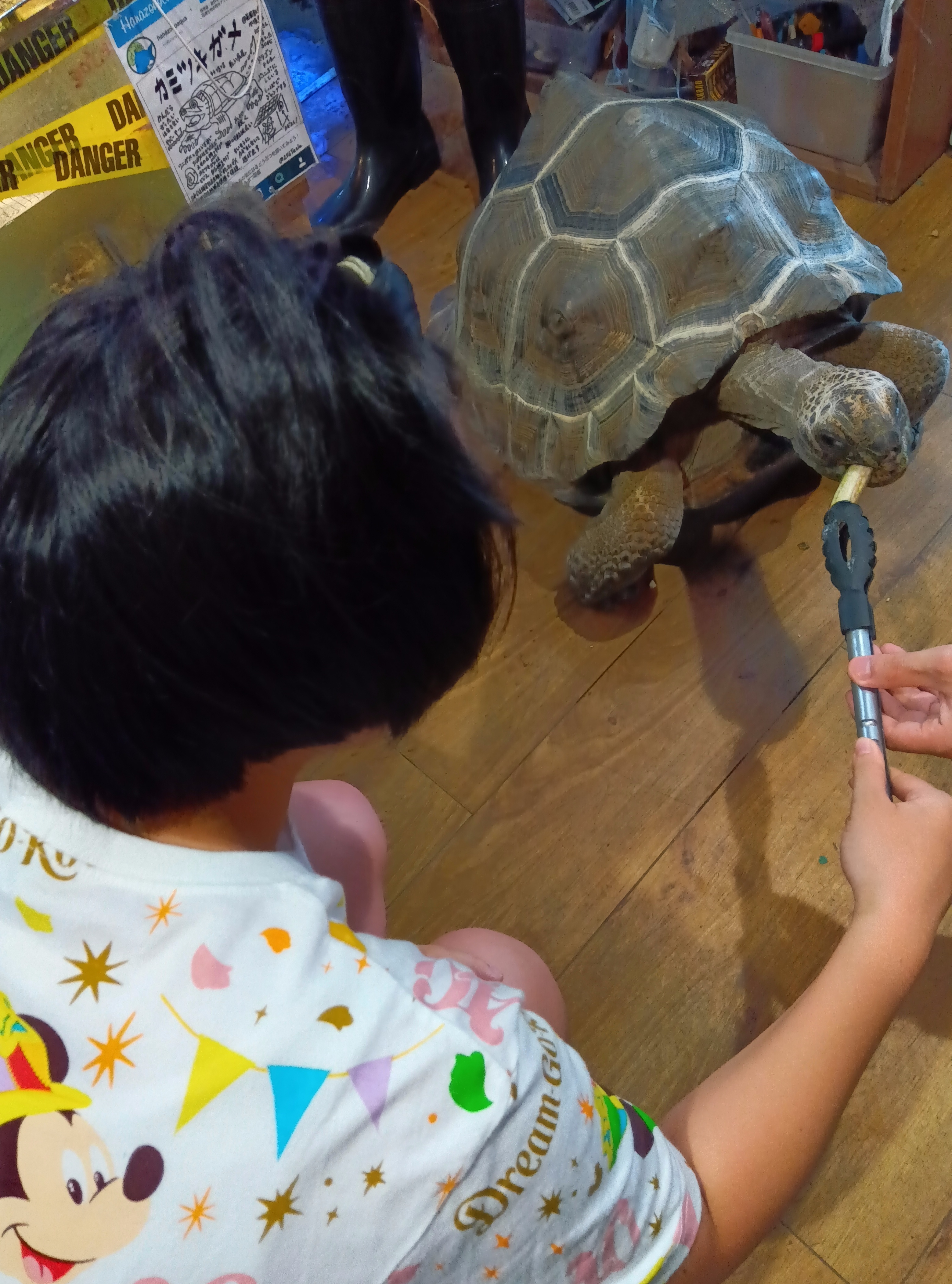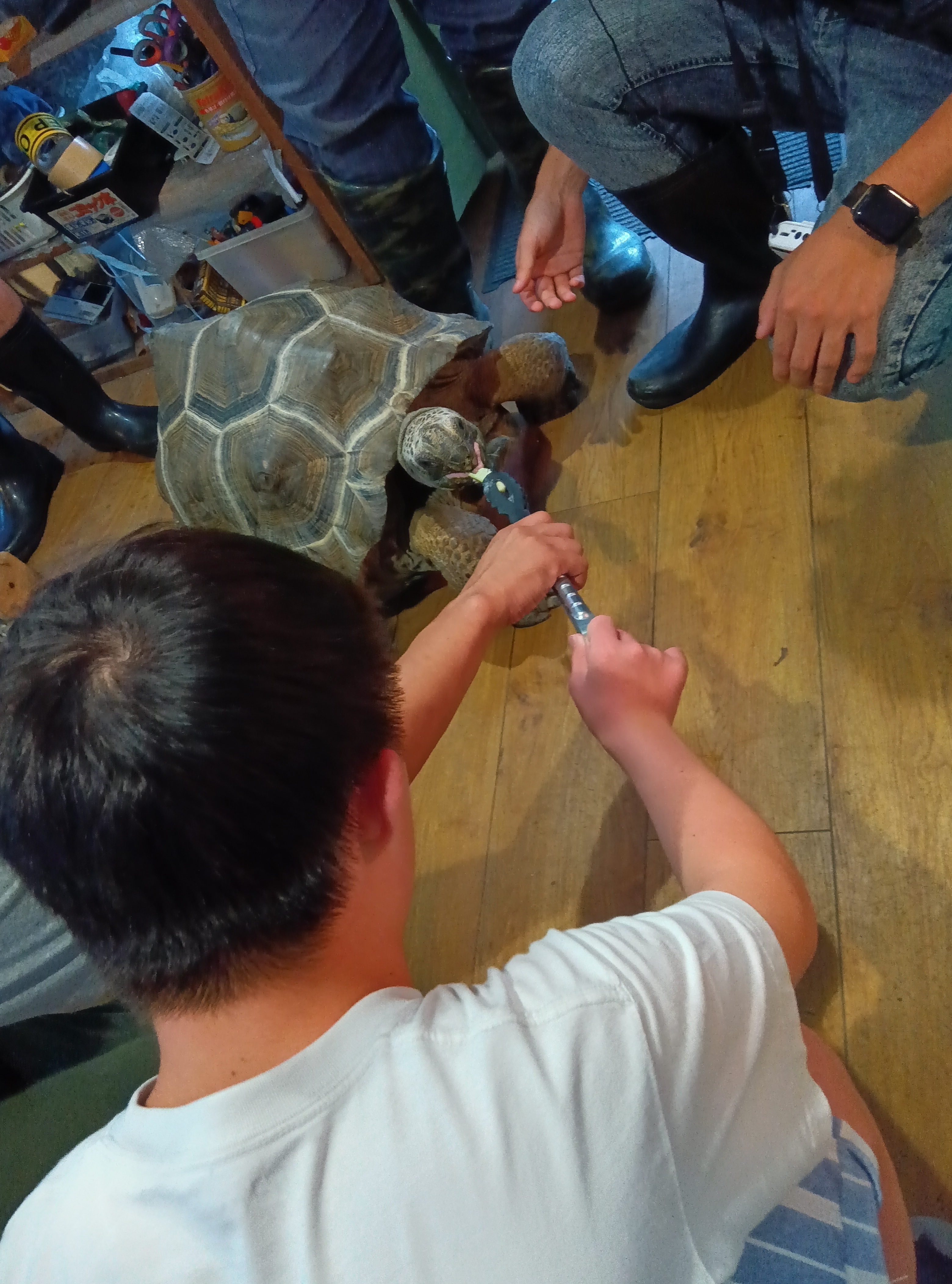 今回みんなが楽しそうだったのはゾウガメの餌やり